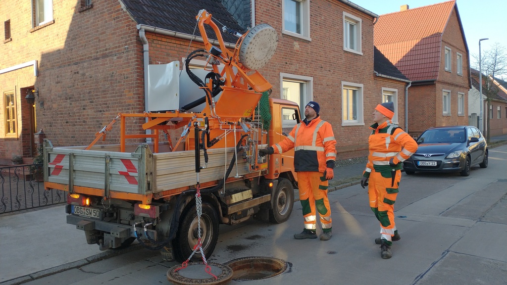 Reinigung der Schmutzauffangkästen zu Regenabläufen und Regenwasserkanälen